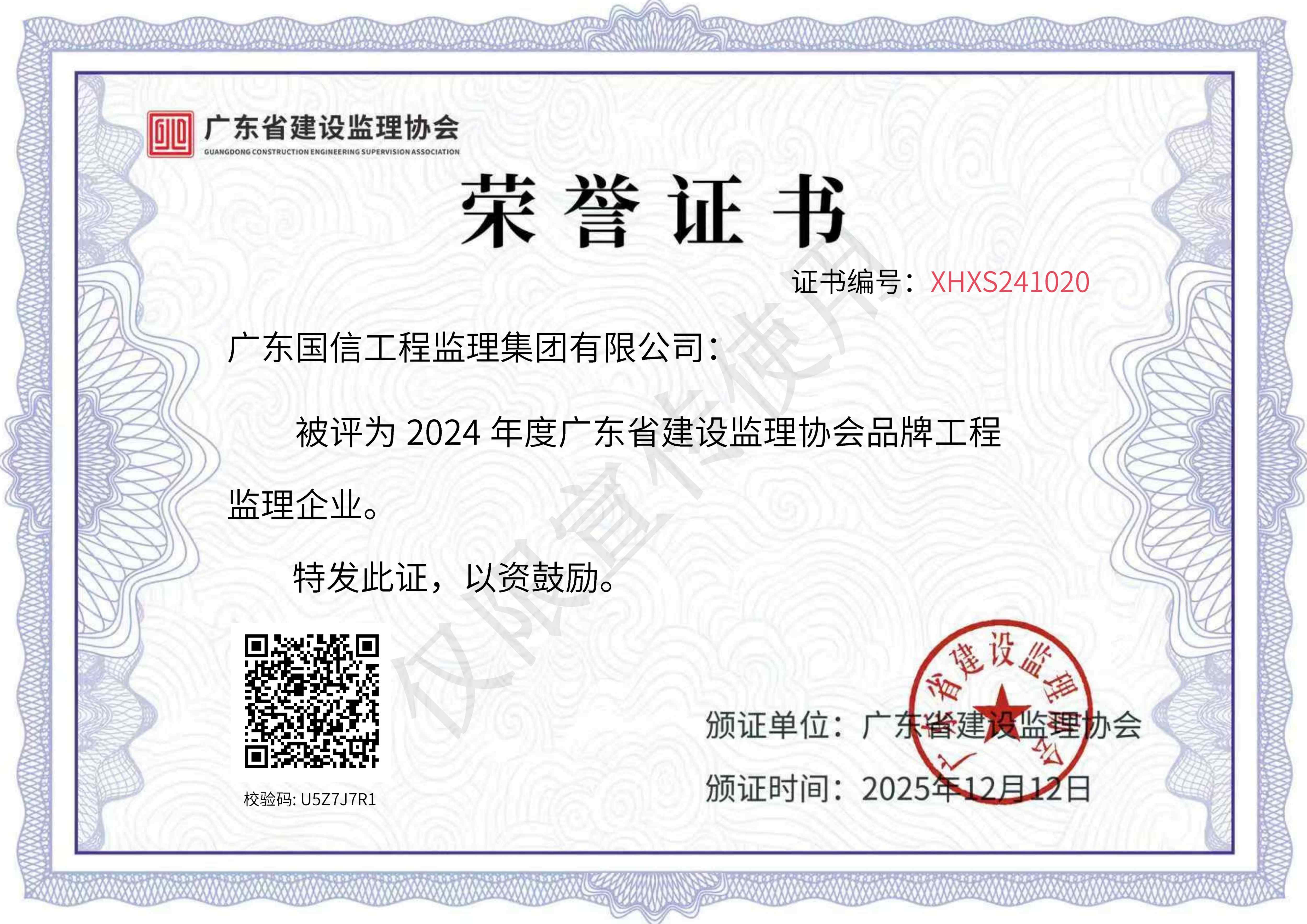 近日,广东省建设监理协会公布2024年度选树活动结果,国信监理集团凭借卓越的服务与优质的口碑,荣获“2024年度广东省建设监理协会品牌工程监理企业”称号。同时,王爱刚、朱虎明、胡勇、陈繁荫、郭广林等5人获评“优秀总监理工程师”,覃绍枢、陈松、陈思达、杨锦富、柳彬、陈建铸等6人获评“优秀专业监理工程师”。