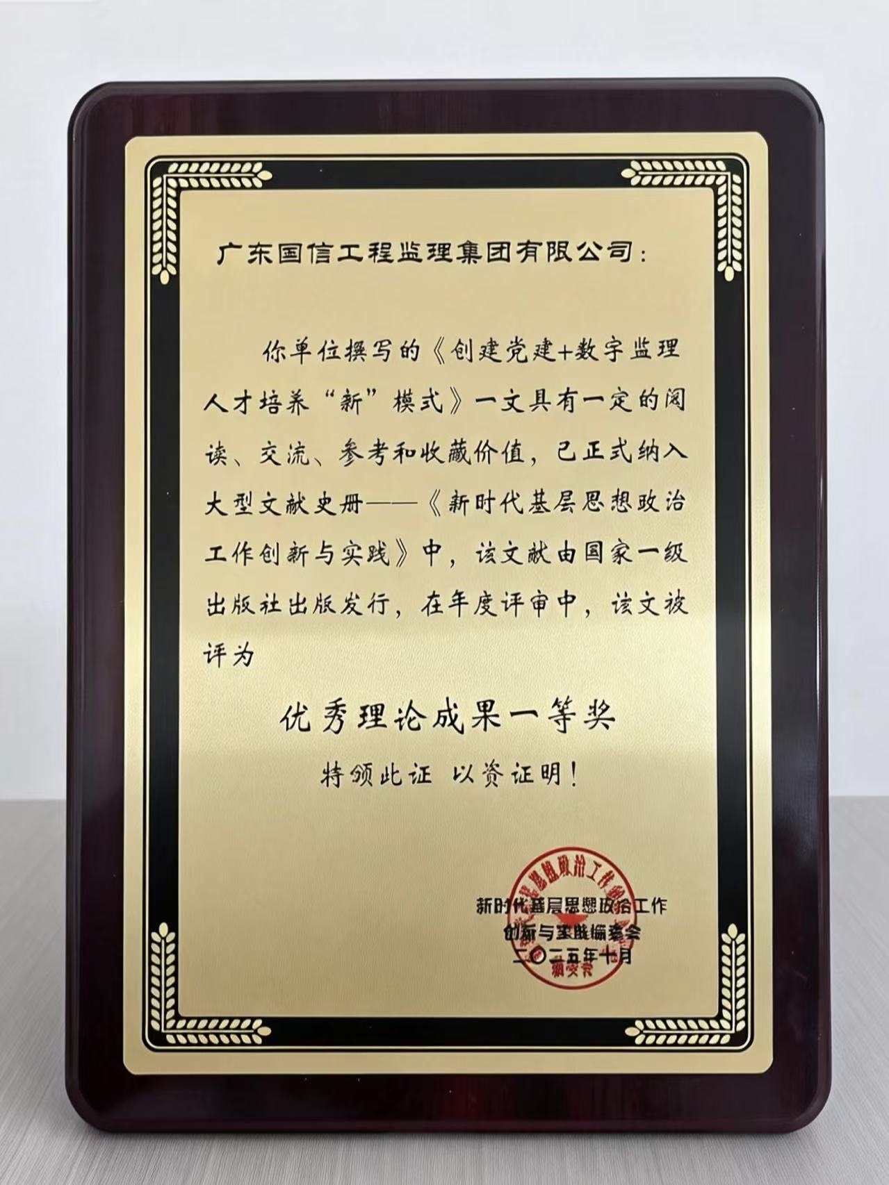 近日,集团党建创新案例《创建党建+数字监理人才培养“新”模式》入编由国家级出版社出版发行的《新时代基层思想政治工作创新与实践》大型文献史册,并获评优秀理论成果一等奖,标志着集团在新时代党建创新领域取得了新成效,实现了党建品牌在国家级层面的又一重大突破。